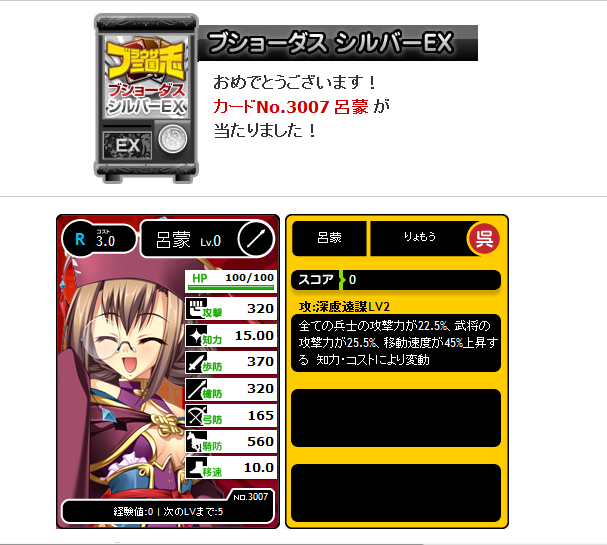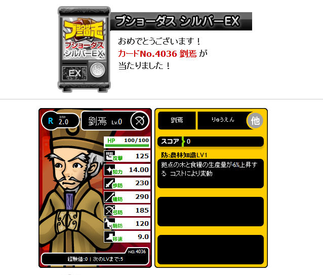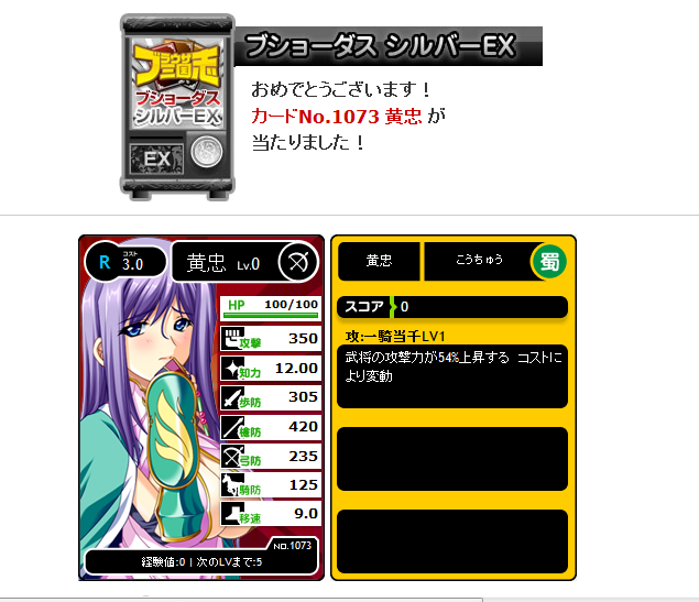 なおさら売ろうかなwww 300程度で売れたらUC賈詡を2枚くらい買えそうですし^^ なるほど、技術付与後に売却っすな 2コス知力16だから案外需要はあるんですかね? 5枚とも良い値で売れるといいなぁ。 |