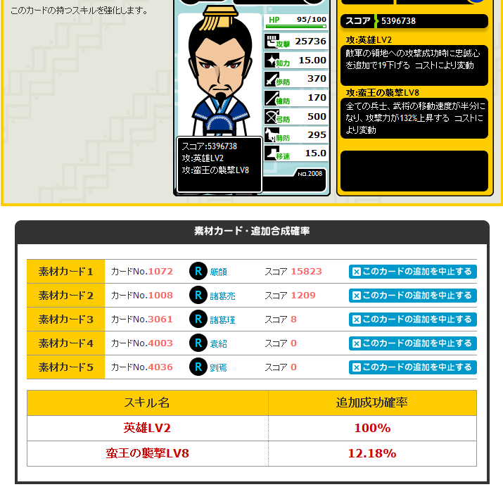 スコア増やすために合成してついた弓兵防御も消さねば。